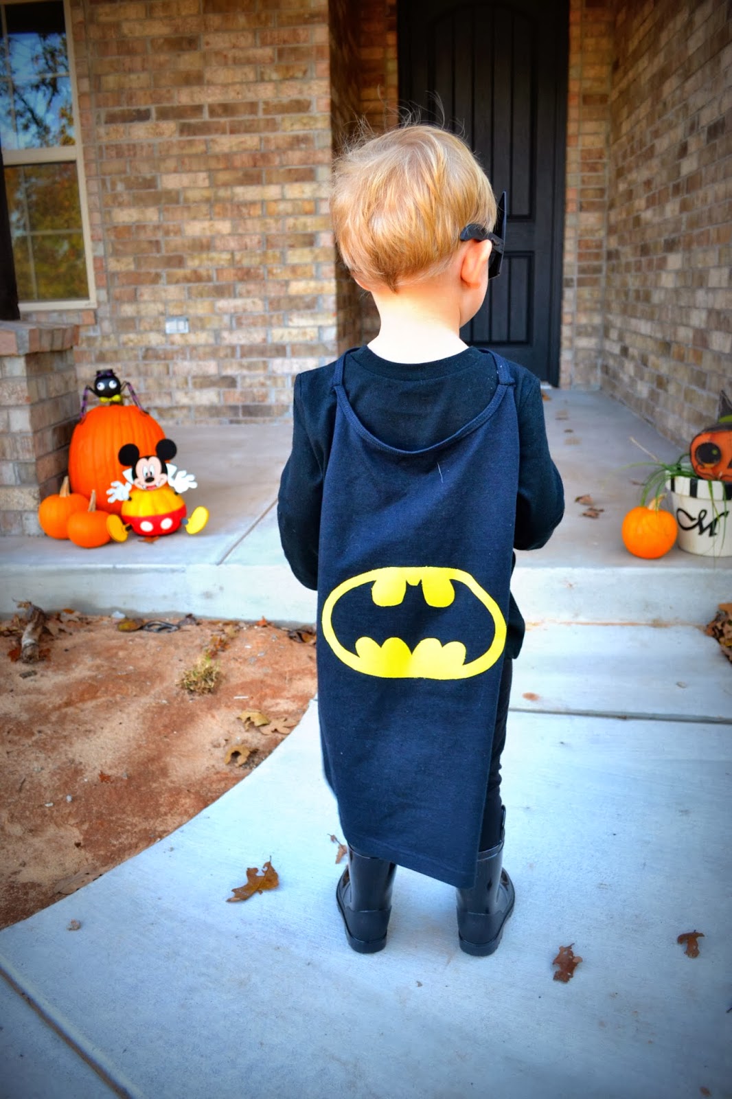 This year he was the dark knight himself.... BATMAN!! He was sooooo cute in his costume and amazingly enough, he even wore the mask. I really did not think he was going to wear it. I envisioned bribing him with whatever it took just to get him to wear it for pictures. But alas, I did not need such tactics. He wore it proudly and for much longer than necessary.